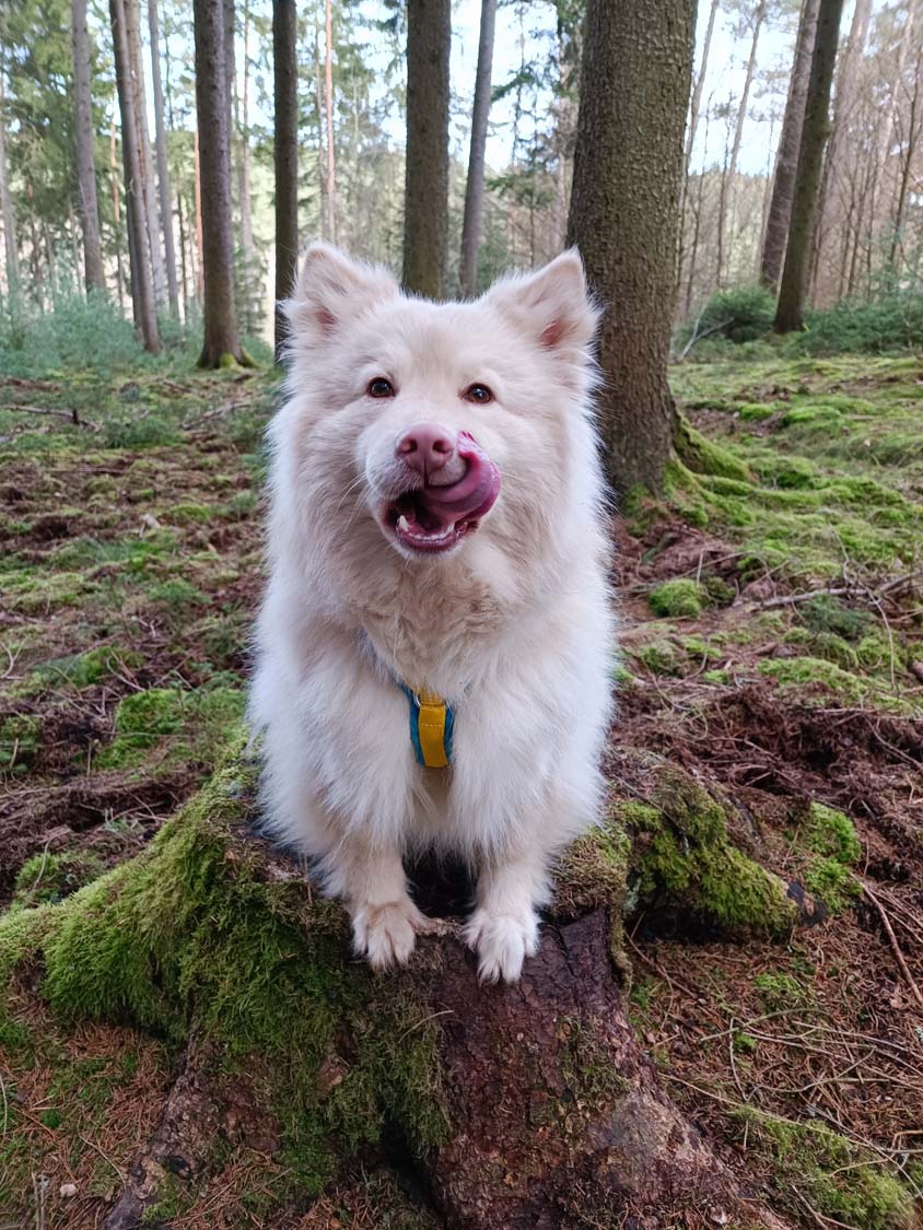 Kiwi... Kiwi ist ein kleines Energiebündel. Die Überlegung Kiwi zu behalten war sehr spontan. Eigentlich spielte ich mit den Gedanken einen Rüden zu behalten, der bei meinen Bruder leben sollte. Nunja leider war kein Rüde in dem Wurf, jedoch schlich sich die kleine cremefarbene Maus schnell in mein Herz. Nach Rücksprache mit meiner Familie kamen wir zum Entschluss Kiwi zu behalten. Kiwi ist eine absolute Kuschelmaus, die ständig die Nähe zu einem sucht und gekrault werden möchte. Die Abende verbringt sie am liebsten mit mir auf dem Sofa, wo sie auf meinen Bauch liegt und die Ohren gekrault bekommt. Zum Glück ist sie mit Abstand die leichteste von der Rasselbande. Ich bezeichne Kiwi gern als mein Corona-Opfer, durch die Einschränkungen in ihrem ersten beiden Lebenshalbjahr zeigt sich Kiwi Fremden gegenüber zurückhaltend, es braucht Geduld und einige Leckerlis, aber dann lässt sich sich auch mittlerweile von Fremden, mal kurz streicheln, sie liebt jedoch die Menschen die sie kennt. Auch fremde Hunde sind ihr leider sehr suspekt, aber auch daran arbeiten wir ... etwas.