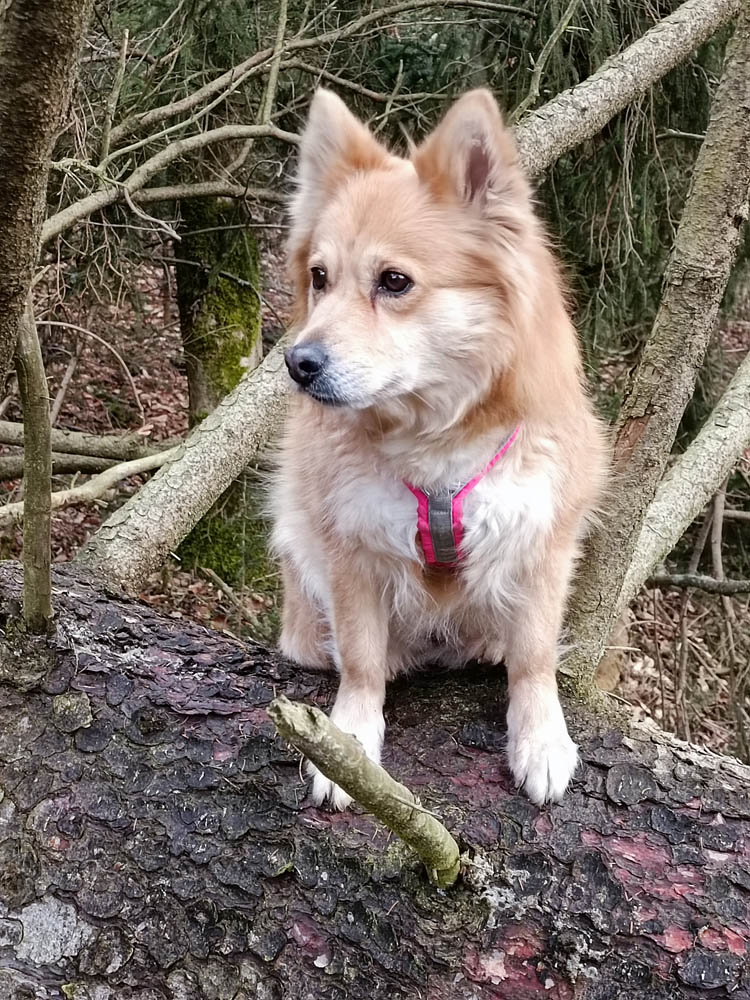 Und so würde Frauchen mich beschreiben:Angel ist ein Traumhund - mein durchgeknalltes Etwas... Sie bietet sehr viel von sich aus an und schaut viel von den Anderen ab (allerdings auch jeden Mist). Sie liebt Fressen über alles und frisst alles und klaut auch alles fressbare. Wir sind so der hoffnungslose Fall in der Hundeschule beim Antigiftködertraining. Wenn sie mal nicht auf der Suche nach was fressbarem ist, liebt sie es bei mir zu sein, um zu kuscheln. Sie liebt Streicheleinheiten und verteilt dabei auch mal gern ein paar Schlabberküsse. Hab ich schon erwähnt, dass sie Fressen über alles liebt - Banane, Möhre, Kohlrabi - wenn man nicht aufpasst würde sie einen das Essen auch vom Teller klauen, okay sie klaut regelmäßig das Essen vom Teller, eine Packung Sauerkraut ist nun ständig auf Vorrat. Sie ist halt ein richtig kleiner (B)Engel. Hab ich schon erwähnt dass sie Fressen mag? Gefrierschrank öffnen ... Check. Dörrautomat öffnen... Check. Küchenschrank öffnen... Check. Babygitter in der Türe überspringen um in die Küche zu kommen... Check. Man lernt definitiv dass es besser ist aufzuräumen. Aber ich liebe sie trotzdem. Sie ist mein Hund mit der größten Lauffreude und sie liebt es am Dogscooter zu laufen. Ausstellungen sind nicht so ihr Ding, außer wenn wir eine Runde durch die Verkaufsstände drehen und sie was zu fressen abstauben kann. Sie ist wie meine anderen Hunde sehr sozial, kommt mit fast allen anderen Hunden sehr gut aus. Aufgrund des Katarakts (Grauer Star) darf Angel nicht in die Zucht, der graue Star wurde im Alter von 18 Monaten bei ihr festgestellt, sie wird nun bald 10, bisher hat sie keinerlei Beeinträchtigungen und äußerlich sieht man an ihrem Auge keine Veränderung, nur ein Fachmann mit Spezialinstrumenten kann den grauen Star erkennen, Augentierarzt bezeichnete es als stationären Katarakt.
